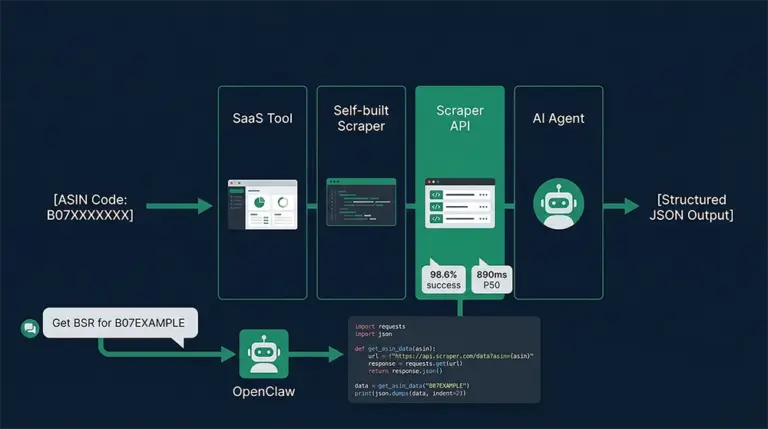 亚马逊ASIN数据采集的工具选型逻辑很清晰:月均查询量1万条以下的个人卖家,ERP工具已够用;1万到100万条之间有技术能力的团队,Pangolinfo Scrape API是最优起点;没有技术背景的运营团队,OpenClaw + Pangolinfo一天内完成接入;构建数据产品或服务AI系统的团队,API方案是唯一选择。